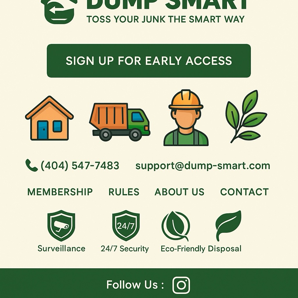 DumpSmart is a secure, membership-based junk disposal site designed to save time and money for homeowners, DIYers, and small contractors. Unlike traditional landfills or costly junk-hauling services, DumpSmart provides members gated access to a clean, safe, and affordable drop-off location. Whether you’re renovating a kitchen, clearing out rental properties, or hauling away yard debris, DumpSmart offers flexible plans to fit your needs — from single-use passes to unlimited monthly drop-offs. With strict guidelines, heavy surveillance, and swift enforcement of violations, DumpSmart ensures a professional, responsible alternative to illegal dumping while keeping our community clean.